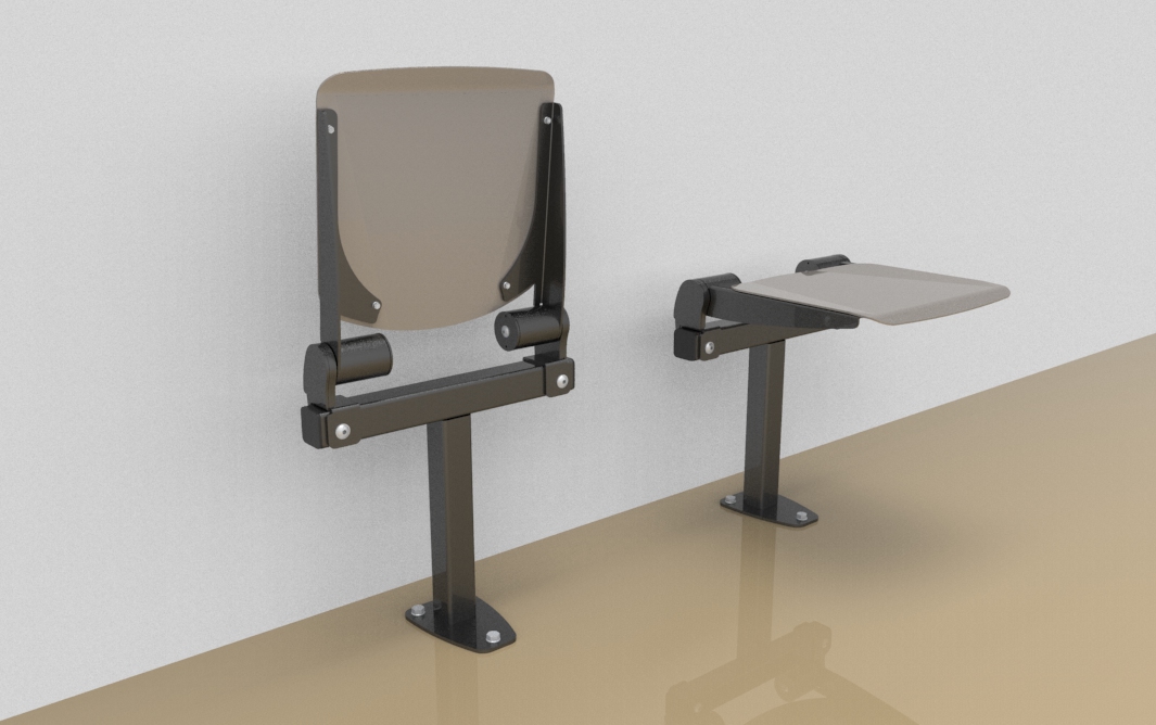 Die Sitzfläche wird mit Federkraft in die Ruhestellung gebracht. Die Sitzhöhe beträgt 450 mm. Sollten Sie eine andere Sitzhöhe oder eine andere Art der Bodenbefestigung (zum Beispiel zum Einbetonieren) benötigen, so fragen Sie bitte uns.