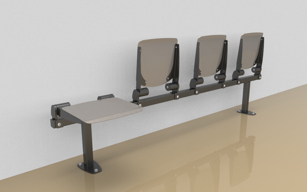 Die Sitzflächen werden mit Federkraft in die Ruhestellung gebracht. Die Sitzhöhe beträgt 450 mm. Sollten Sie eine andere Sitzhöhe oder eine andere Art der Bodenbefestigung (zum Beispiel zum Einbetonieren) benötigen, so fragen Sie bitte uns.