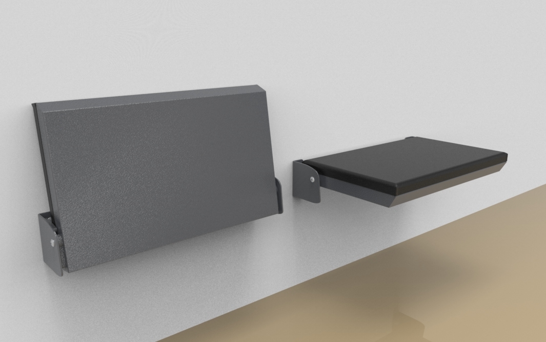 The seating area is brought into the resting position by the means of springs, however, the strength of the springs is adjusted so that in this model the seat cannot fold back up of its own accord.