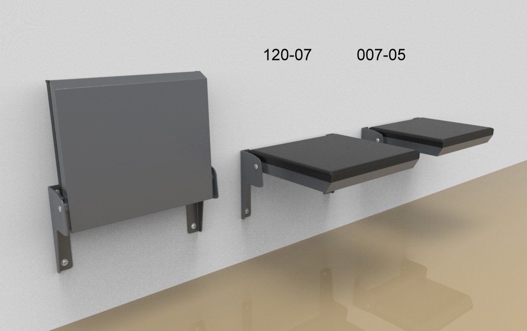 The seat is brought into the resting position by the means of springs that will automatically bring the seat back into resting position against the wall when not in use.